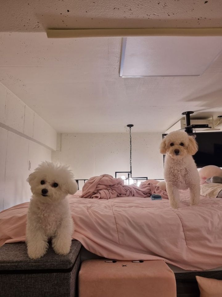 우리 겁쟁이 강아지들 :) 일하면서 아이들이 재미있게 잘 놀고 있는걸보면 일하면서 힘들어서 지치다가도 기운이 납니다✌🏻 이제는 저보다 같이 일하는 선생님들이 시터선생님 언제오시냐구 물어봅니다 ㅋㅋㅋㅋㅋㅋ 선생님이 찍어주시는 사진을 기다려요 ㅋㅋ😙 오실때마다 아이들 사진도 너무너무너무 잘 찍어주시구 겁쟁이 밥풀이가 이제는 선생님 무릎에만 누워있는거보면 얼마나 편하게 잘해주셨으면 밥풀이가 껌딱지처럼 있는지 ㅎㅎ 마음 편하게 일 할 수 있습니다 ㅎㅎ 선생님 가시면 문앞에서 누워서 또 선생님을 기다리는 멍뭉이들🐶 엄마보다 선생님을 더 좋아하게 될까봐 걱정입니다😜 오늘도 숭늉이밥풀이랑 잘 놀아주셔서 감사합니다😘 주말 잘보내시구 다음주에 뵐께용